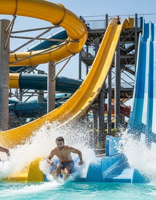 - Experience a mix of super daring, milder and kid-exclusive rides, slides and attractions within the water park.