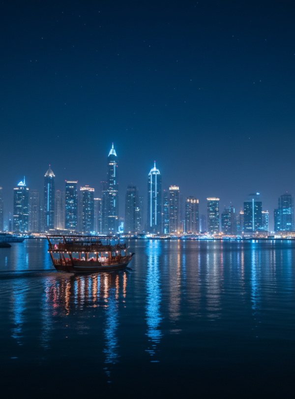 Our Marina Dhow Cruise combines magical sightseeing, delectable dining, and striking traditional entertainment shows in an elegant setting. Lasting for about 90 minutes, this Marina Dhow Cruise Dubai experience allows you to absorb the modern city’s unrivaled architecture, opulent yachts, and breathtaking waterfront sights at their best.